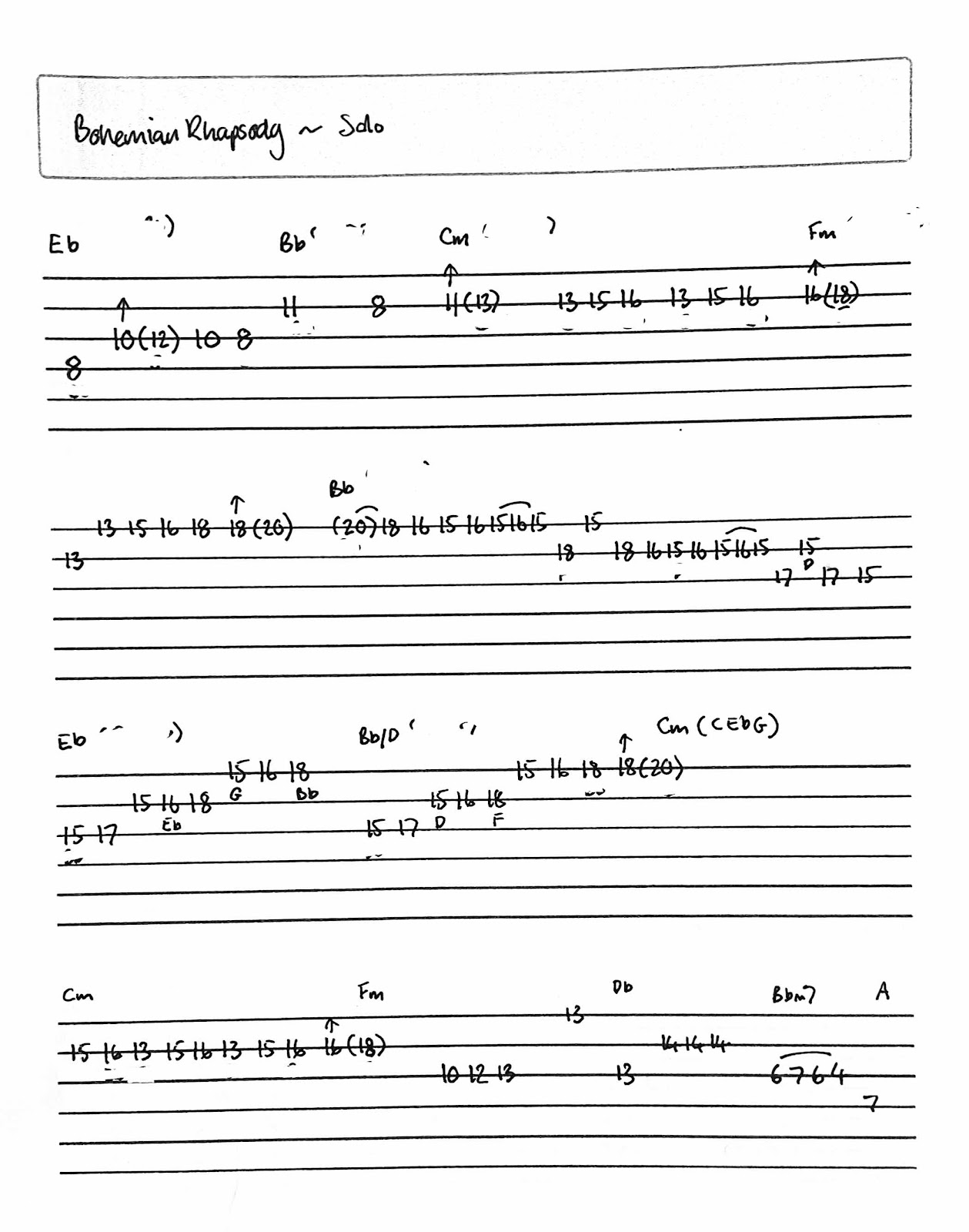 Queen Bohemian Rhapsody Guitar Solo Tab
